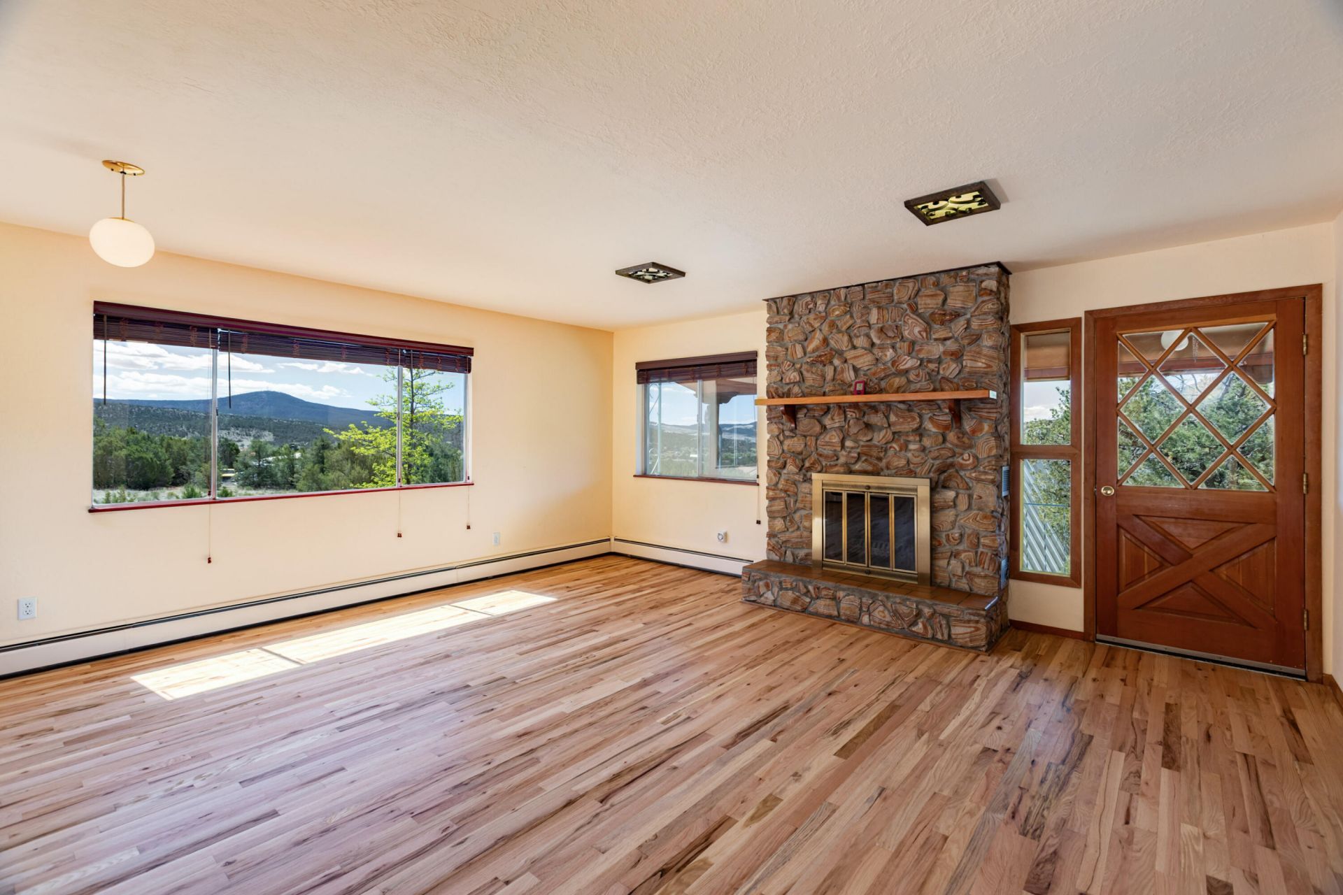 Enjoy peaceful country living with stunning views--just 15 minutes from town. This beautifully updated home sits on 2.5 fully fenced acres, perfectly positioned to take in the breathtaking Sandia Mountain views. Inside, the open floor plan is complemented by warm hardwood floors, creating an inviting, light-filled space. Step out onto the expansive west-facing deck to soak in those unforgettable sunsets. Downstairs, the fully finished, heated walkout basement offers incredible flexibility--ideal for a den, game room, studio, or whatever suits your lifestyle.