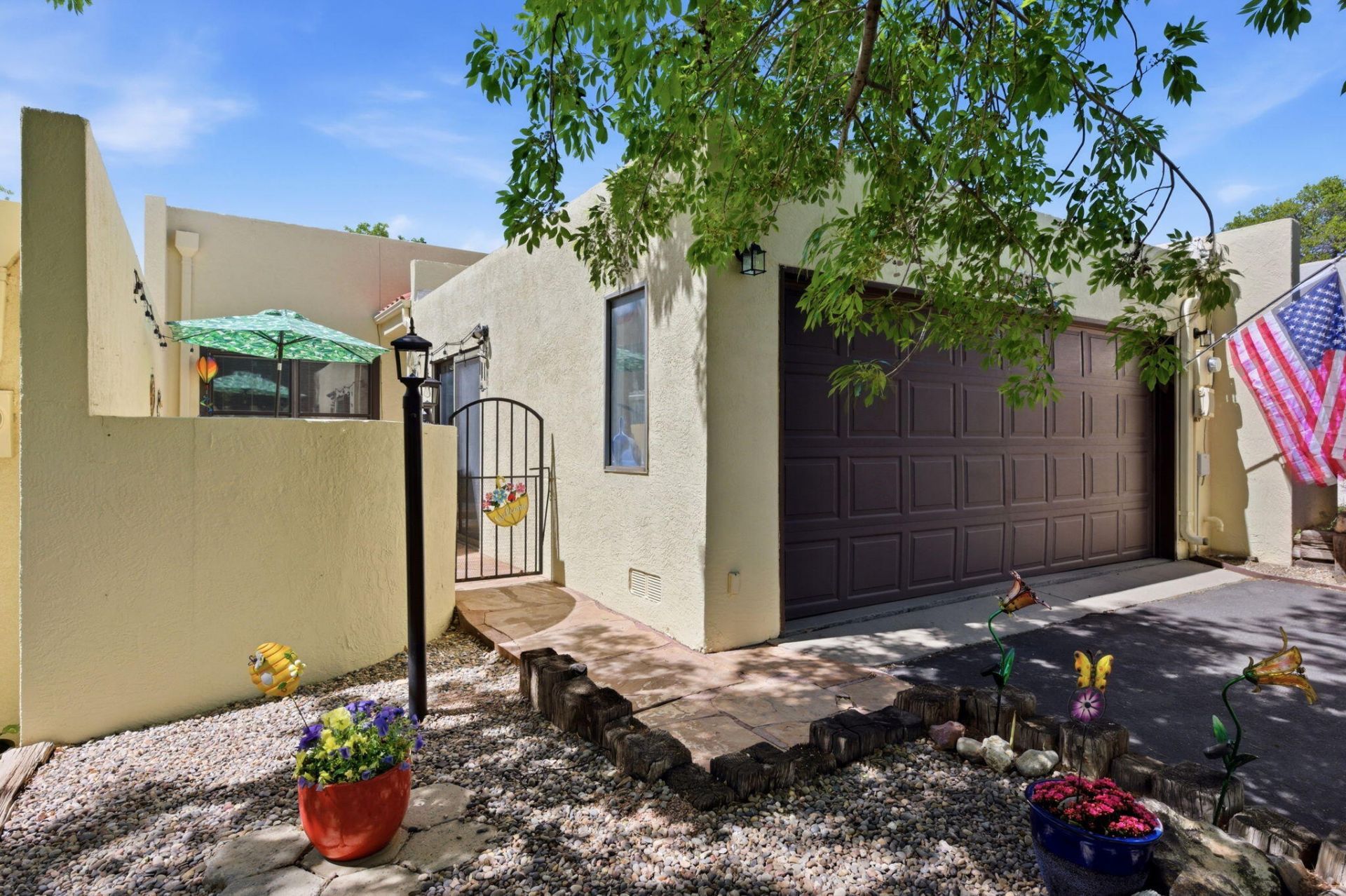 Welcome to this spacious 2 bedroom/2-bathroom townhome in The Esplanade 55+ community! A lovely, gated courtyard greets you as you enter the home, perfect for enjoying those beautiful New Mexico days. Inside you will find a large living space with lots of natural light. The washer/dryer, stove, refrigerator, and dishwasher are approximately 1 year old. Freestanding microwave can convey with the sale. The primary bedroom is large and has 2 separate closets along with access to the enclosed back porch/sunroom, perfect for enjoying coffee or tea in the early morning or a glass of wine in the evening. Lots of storage space throughout the home for all your things! The exterior/grounds are maintained by the HOA so your time is free for fun stuff! Located close to lots of shopping, restaurants.