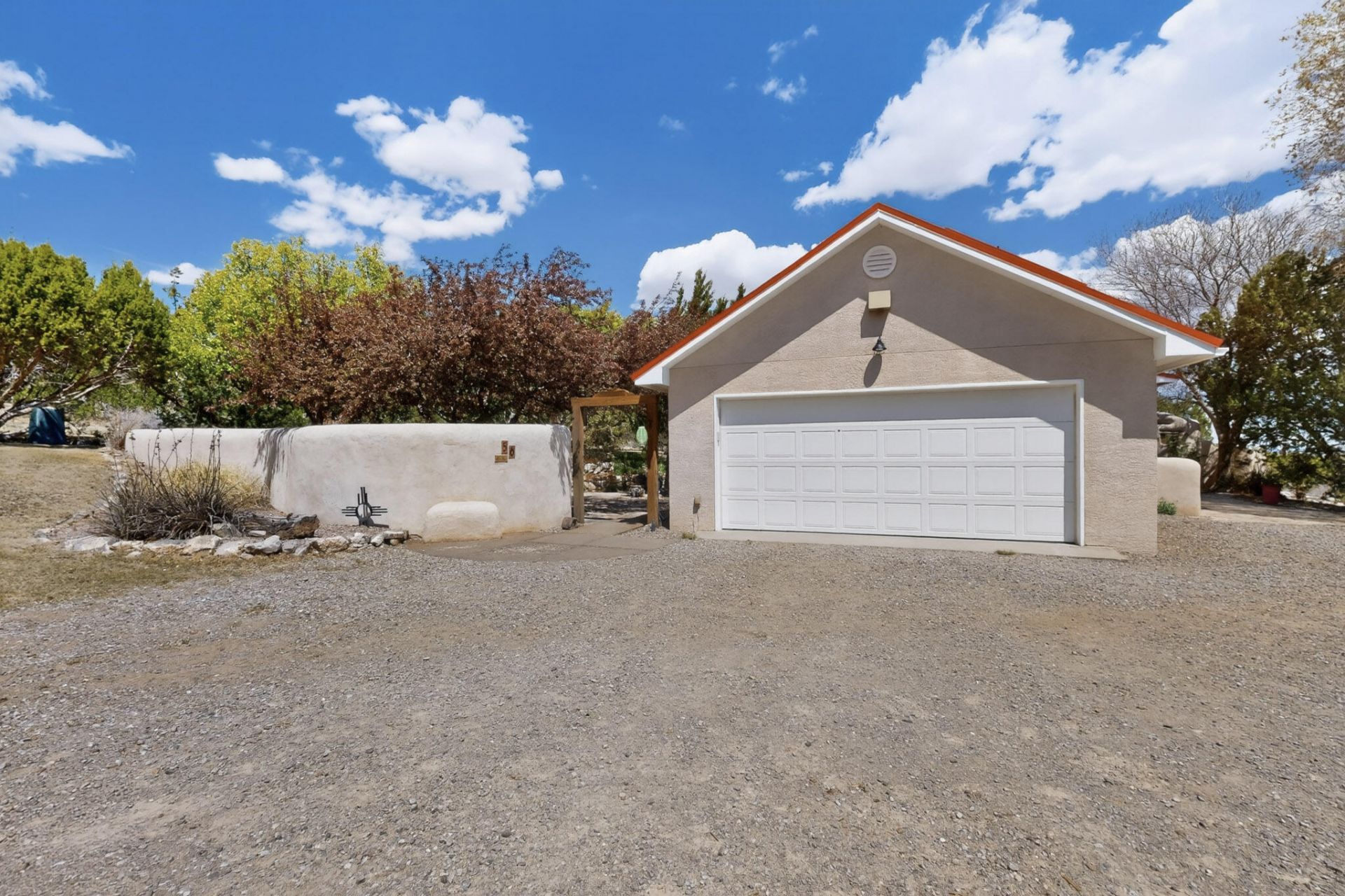 Lovingly named the Red Roof Ranch by its current owners, this one-of-a-kind property blends timeless Southwest charm with thoughtful modern comforts. Set on 2 fully fenced acres in a peaceful neighborhood with county-maintained paved roads and close access to I-40, this home offers both privacy and convenience--perfect for those seeking wide-open space without sacrificing accessibility. The thoughtfully designed interior features large-format Italian tile throughout the main living areas, creating a seamless and elegant flow. The upper level of the home features a beautiful primary suite with a recently updated, spa-like master bath. Other bedrooms are designed with comfort in mind, boasting gleaming hardwood floors and generously sized walk-in closets.