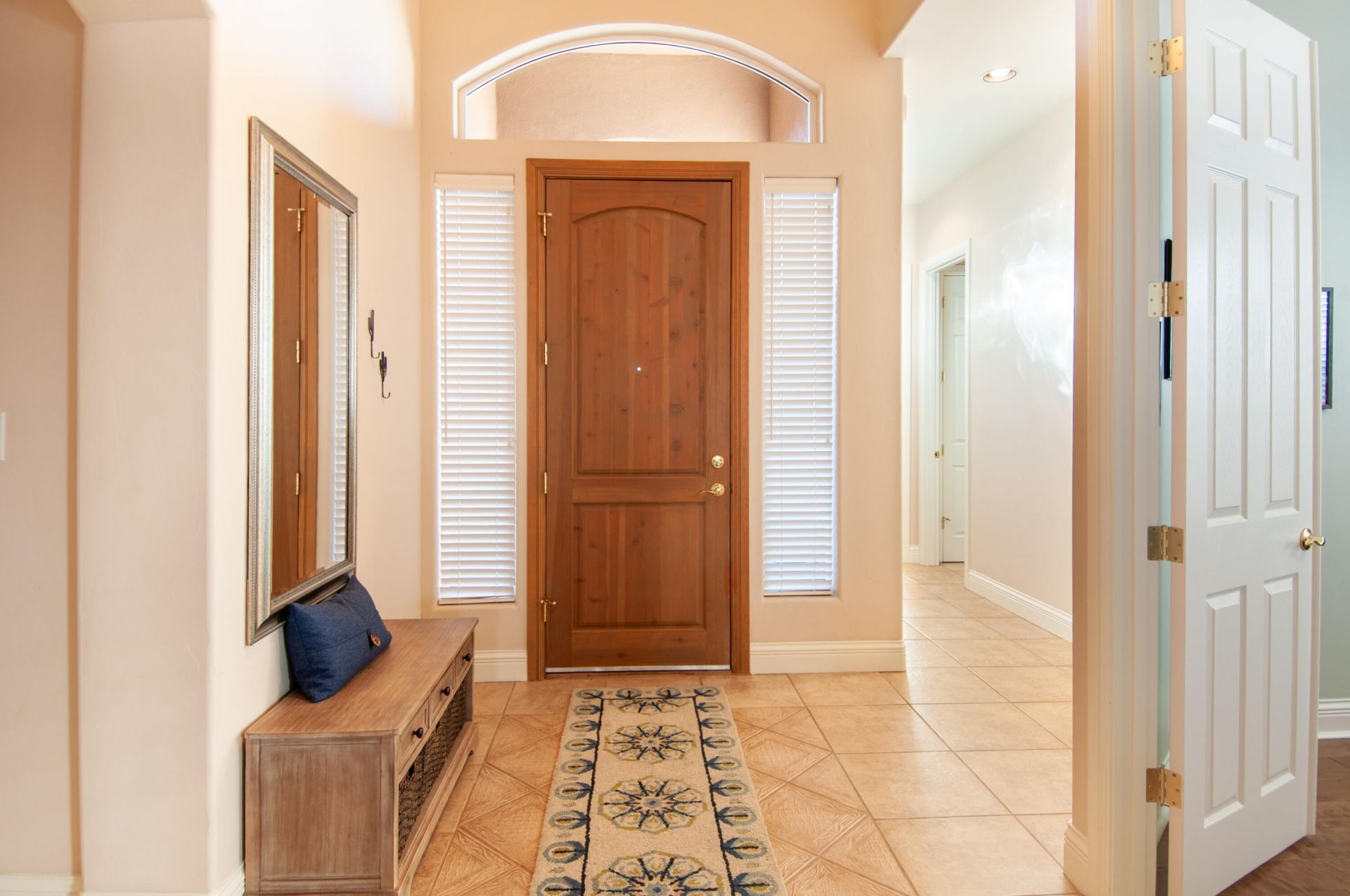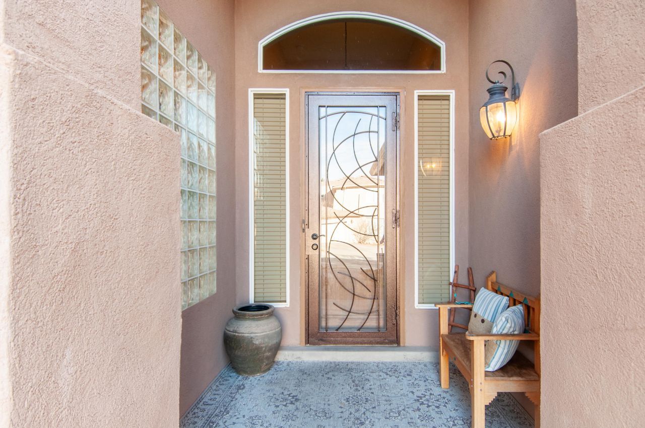This beautiful, immaculate single level home is in a gated High Desert community. Designed for comfort and versatility, this flexible floorplan adapts to your lifestyle. Multiple living areas offer different possibilities for living: formal living, dining, a cozy den, or an office. A striking two-way fireplace creates ambiance while connecting the main spaces beautifully. The kitchen has warm, natural cabinetry with stainless appliances & a gas cooktop, and separate pantry. The generous primary is a true retreat, with an exterior door that leads to the tastefully xeriscaped backyard. Primary full bath has jetted tub, dual sinks, separate shower and walk-in closet. Enjoy your patio with a hint of the Sandias nearby. Abundant storage in the home and x-long garage.